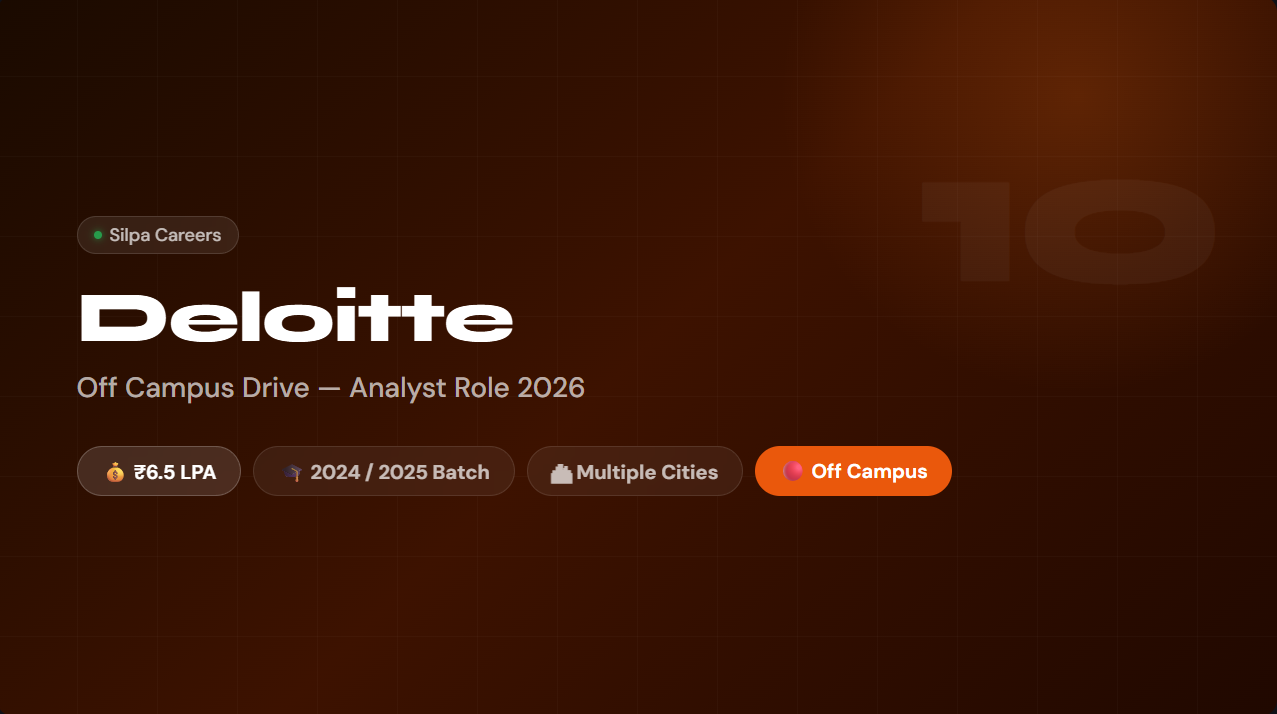 🏢 Deloitte Off Campus Drive 2026 — Analyst Role | ₹6.5 LPA | Big 4 Career | Apply Now Deloitte Off Campus Drive 2026 is open for 2024 & 2025 batch graduates. Apply now for Analyst / Analyst Trainee roles at ₹6.5 LPA across Bangalore, Hyderabad, Mumbai, Pune, and Chennai. Complete eligibility, all 5 selection … Read more